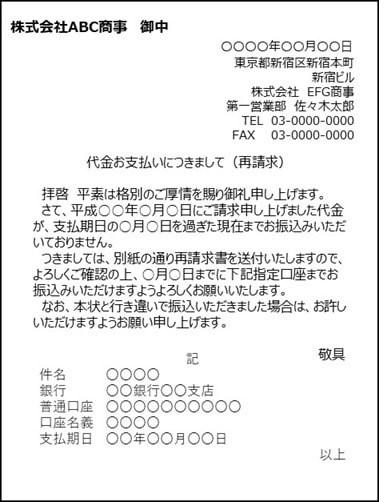 こうした際、再請求書の形でもう一度請求書をお送りする場合もあります。